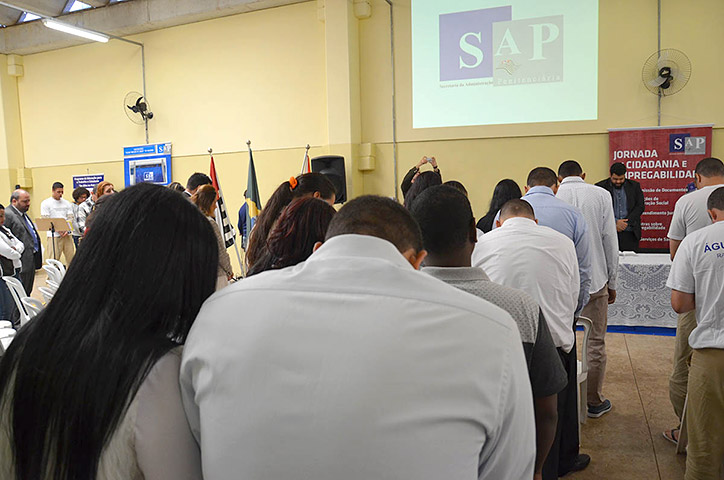 Uma das atividades promovidas pela Jornada de Cidadania e Empregabilidade da Penitenciária II “Gilmar Monteiro de Souza”, de Balbinos” (PII), foi um casamento coletivo, concedido à sete reeducandos e suas respectivas noivas – dois deles se casaram via procuração. O evento ocorrido em 22 de maio, garantiu aos presos o direito de se casarem em uma celebração religiosa mesmo estando reclusos. Representante do cartório civil também esteve presente para colher as assinaturas que legitimam a união.