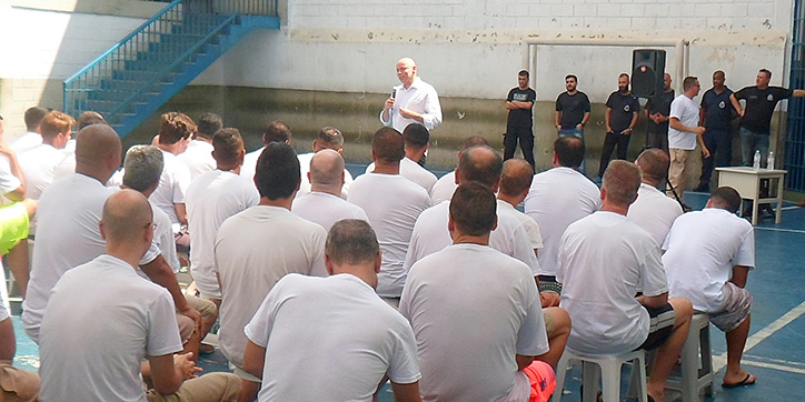 Filósofo Leandro Karnal em palestra junto aos reeducandos do CDP Pinheiros III
