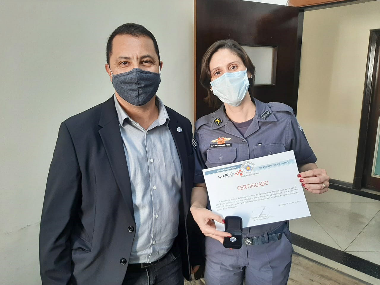 Em 27 de julho deste ano, o chefe da Assessoria Militar da SAP, Capitão Dilson Alves da Silva, fez a entrega formal de um certificado à Capitão Pane, em reconhecimento ao auxilio prestado no desenvolvimento da parte heráldica e do design gráfico do pin daquela Assessoria, que tem por objetivo identificar os PMs que fazem a escolta e a segurança do Secretário da Pasta, Coronel Nivaldo Cesar Restivo.