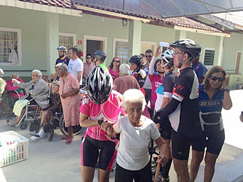 Ciclistas e as senhoras do Lar São Vicente de Paula