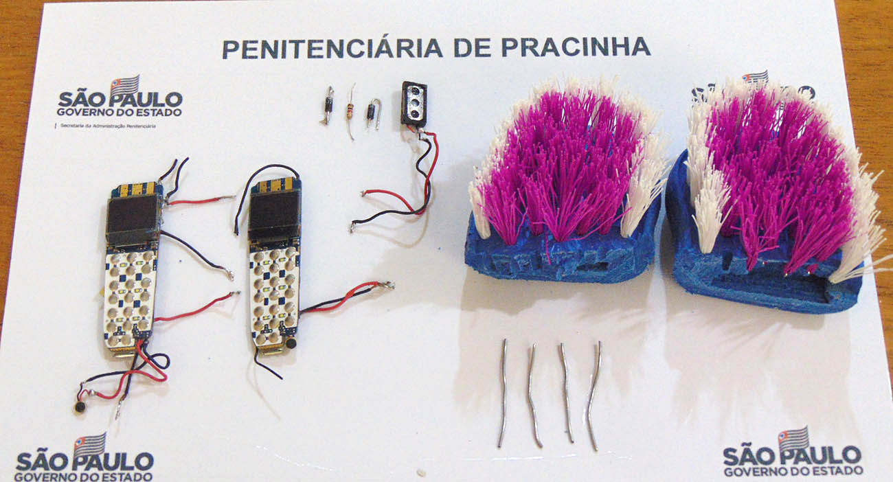 No último domingo (03/04), a companheira de um reeducando da Penitenciária de Pracinha foi surpreendida durante procedimento de revista pelo scanner corporal, uma vez que o aparelho identificou uma imagem suspeita no corpo da mulher. Ela então confessou que trazia um invólucro costurado no fundo da calcinha, retirando-o da peça íntima em local apropriado. Após entregá-lo aos agentes prisionais, estes constataram que se tratava de 05 (cinco) folhas de caderno com contabilidade e anotações referentes à facção criminosa. A mulher foi suspensa do rol de visitas e o sentenciado responderá `a Procedimento Disciplinar. No dia 01/04, em outra apreensão, a unidade interceptou uma correspondência destinada a um dos sentenciados, que trazia 02 (dois) aparelhos micro celulares sem revestimento, componentes eletrônicos e fios de estanho para solda ocultos no interior de uma escova de lavar.