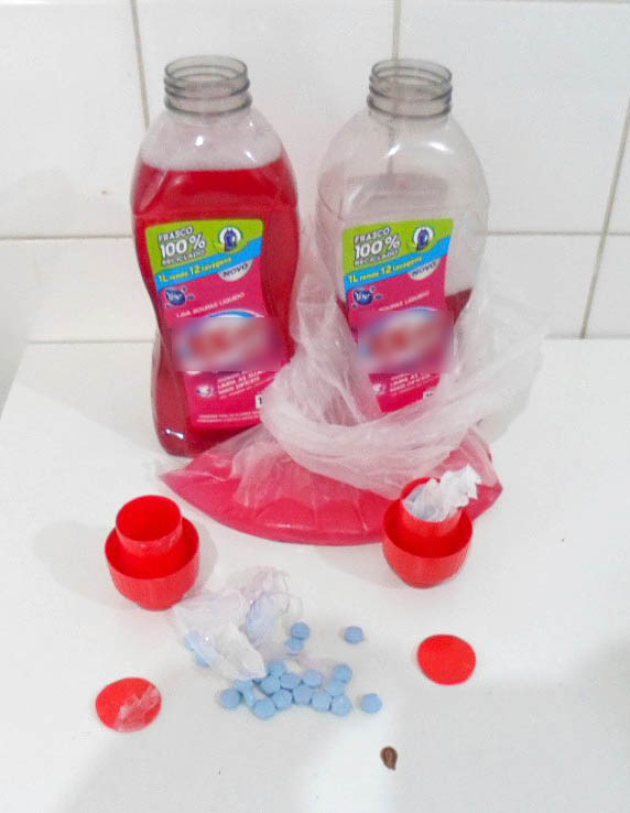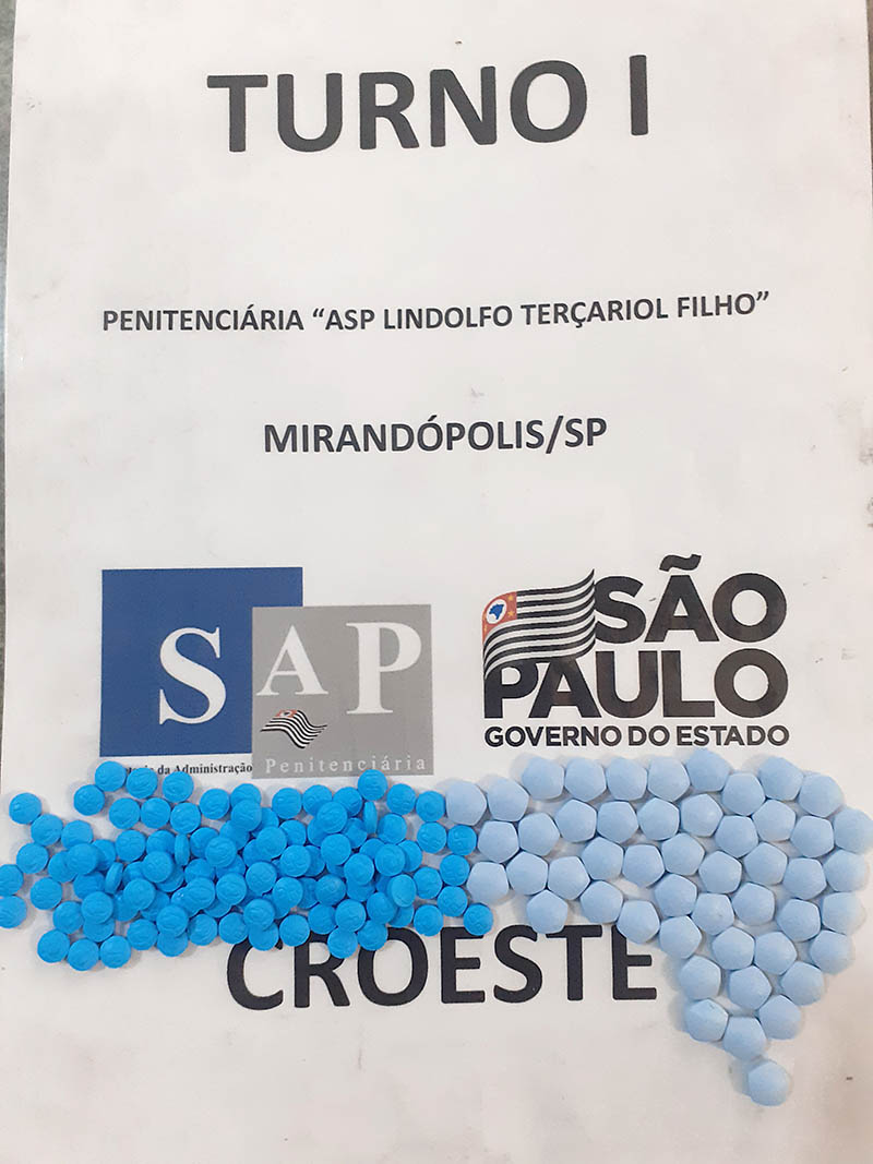 No dia 01/04, durante a realização de revista de praxe nos pertences enviados a sentenciados da unidade prisional via correspondência, agentes de segurança apreenderam 139 (cento e trinta e nove) comprimidos de coloração azul semelhantes ao estimulante sexual conhecido como “Pramil”. Os comprimidos estavam ocultos dentro de pedaços de linguiças calabresas, as quais foram remetidas a unidade pela irmã de um sentenciado que, ao ser questionado, manteve-se em silêncio. Dois dias antes, no dia 30/03, a unidade já havia apreendido, nos mesmos moldes, outros 48 (quarenta e oito) comprimidos de coloração azul que estavam ocultos em tampas plásticas de recipientes de lavar roupas, e que fora remetido à unidade pela filha de um sentenciado. Diante dos ocorridos, foram tomadas as devidas providências quanto à remoção dos reclusos ao pavilhão disciplinar; instauração de procedimentos disciplinares em desfavor dos sentenciados e instauração de procedimentos para suspender do rol de visitas as remetentes dos embrulhos, além de comunicação à autoridade policial.