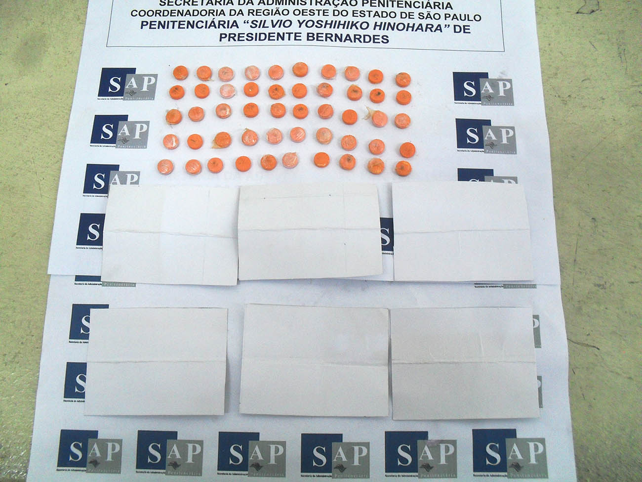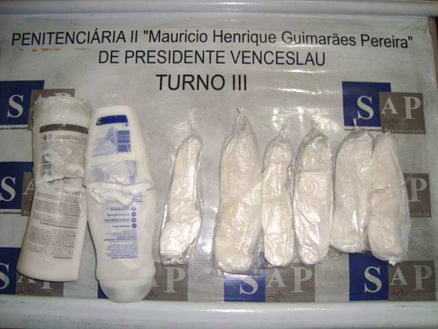 Na Penitenciária “Maurício Henrique Guimarães Pereira”, de Presidente Venceslau, no dia 04/08, foram apreendidos seis invólucros com cocaína dentro de duas embalagens que estavam com uma visitante de sentenciado, sendo uma de xampu e outra de condicionador de cabelo.