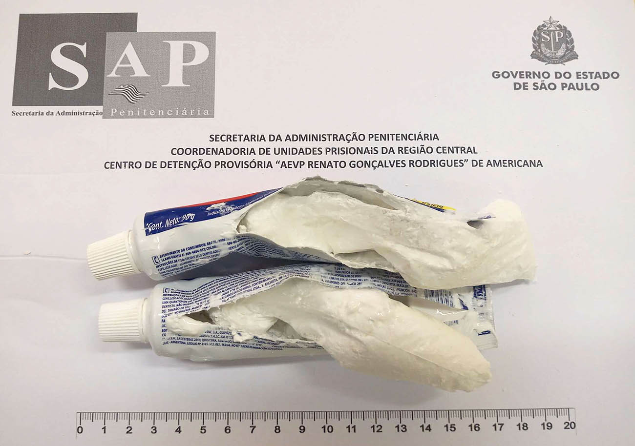 A Secretaria da Administração Penitenciária (SAP) informa que agentes de segurança do Centro de Detenção Provisória (CDP) de Americana encontraram 41g de cocaína dentro de um tubo de creme dental, na quarta-feira, 9. O flagrante ocorreu durante o procedimento de revista das mercadorias enviadas para os custodiados da unidade prisional. O creme dental adulterado estava entre os itens pessoais que a companheira de um reeducando havia enviado. Diante da apreensão, o homem que receberia os pertences foi isolado preventivamente para procedimento disciplinar. A droga apreendida foi encaminhada para a delegacia, já a remetente foi suspensa do rol de visitas.
