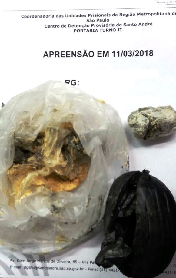 No CDP de Santo André, no domingo, 11, companheira de preso da unidade foi surpreendida durante o procedimento de revista ao passar pelo scanner corporal portando um invólucro contendo maconha e cocaína, introduzido nos genitais.