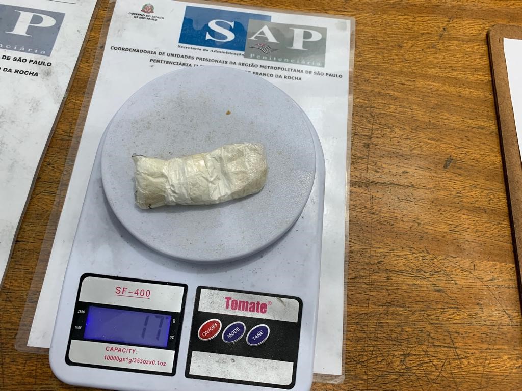 No sábado, 12/10, pouco depois das 12h, a esposa de um detento foi surpreendida com 72g de maconha e 53g de cocaína na portaria do Centro de Detenção Provisória “Dr. José Eduardo Mariz de Oliveira”, o CDP de Caraguatatuba. A mulher foi submetida ao escaneamento corporal, quando as servidoras identificaram um objeto estranho na região pélvica da suspeita. Questionada, a mesma admitiu que carregava um invólucro com as drogas na vagina, retirado espontaneamente em local reservado.