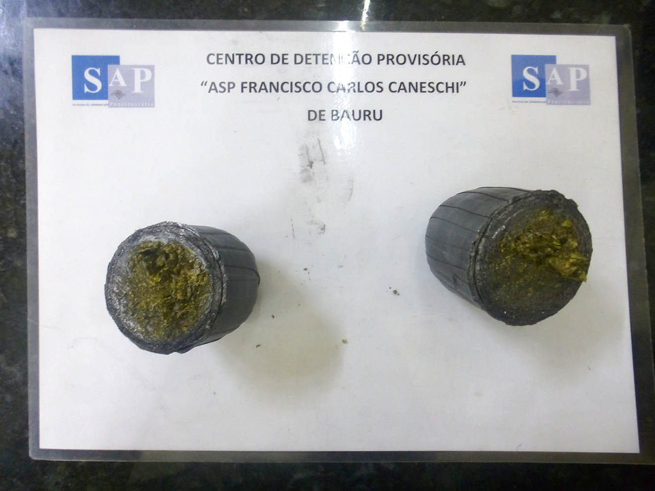 Na Penitenciária “Odete L. Campos Critter, no dia 18/05, servidores localizaram, durante procedimento de revista manual na sacola "JUMBO" de um visitante, porções de haxixe em um pote de comida.