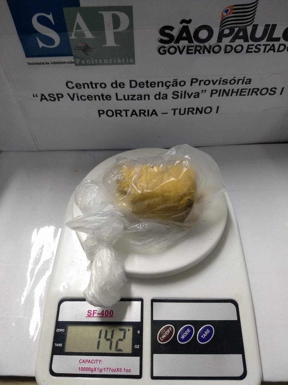 Ainda na capital, no Centro de Detenção Provisória I “ASP Vicente Luzan da Silva”, de Pinheiros, no sábado, dia 18/05, os agentes de segurança de plantão verificaram pelas imagens do escâner corporal que uma visitante estava com um pacote escondido em sua genitália. A princípio, a mulher negou estar com o invólucro, porém, ao ser questionada novamente, afirmou que levava 142g de cocaína.