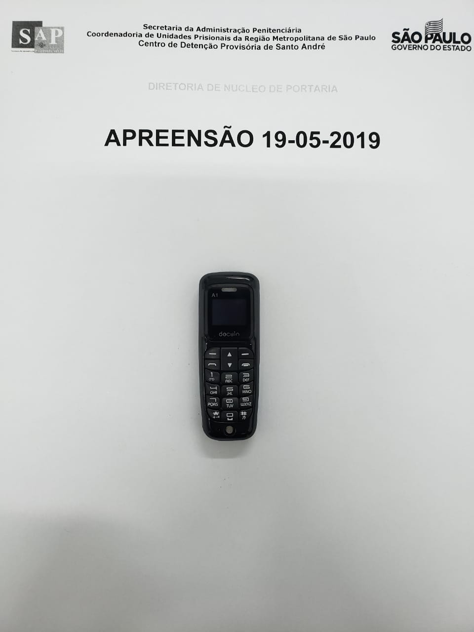 Durante procedimento de revista mecânica, realizada pelo escâner corporal, os agentes de segurança do Centro de Detenção Provisória de Santo André notaram um volume anormal na região da cintura de uma visitante. Em local apropriado, a mesma afirmou que estava em posse de um ilícito e retirou o aparelho celular que estava oculto em sua roupa íntima.