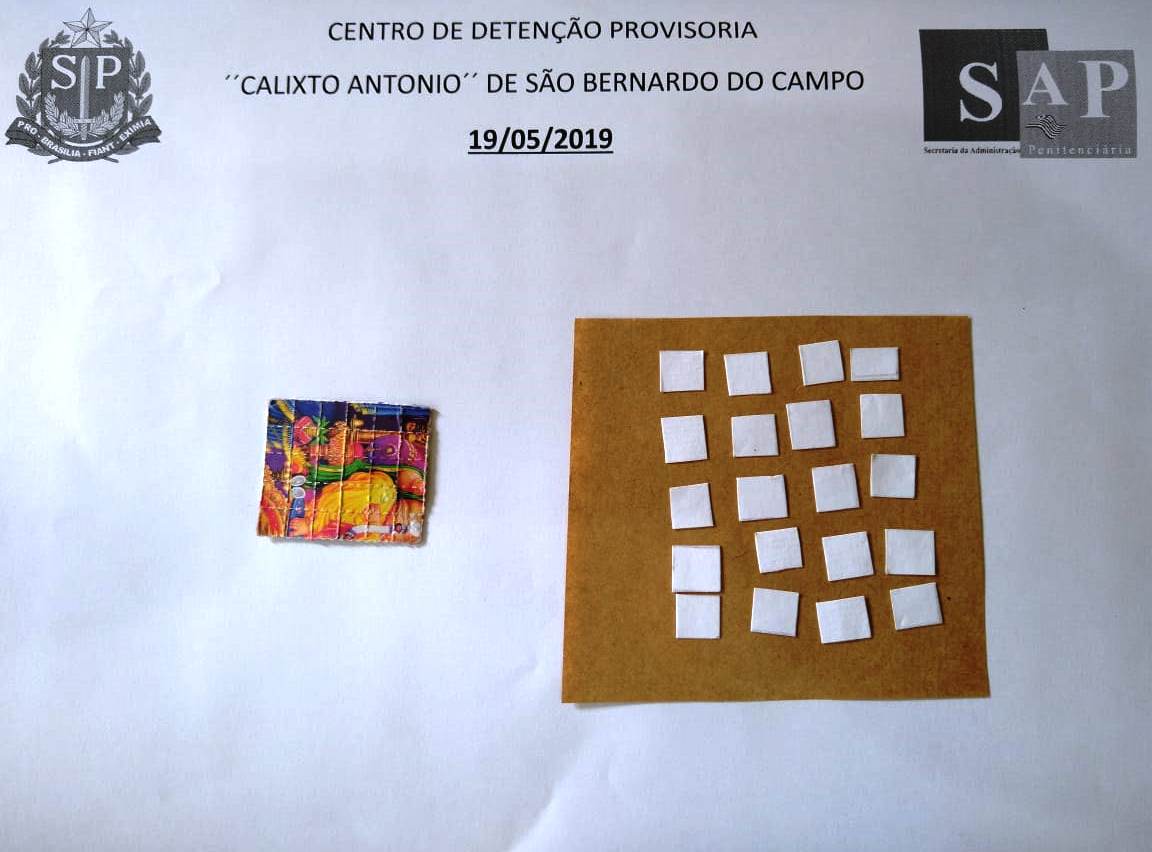 Duas visitantes do Centro de Detenção Provisória de São Bernardo do Campo foram surpreendidas, no último final de semana 18 e 19/05, com drogas sintéticas K4 e LSD. Em uma das apreensões, a visitante levava K4 em um maço de cigarros, que seriam, segundo a mesma, para consumo próprio. No domingo, o pai de um detento escondeu LSD em sua cédula de identidade e K4 nas barras de sua calça.