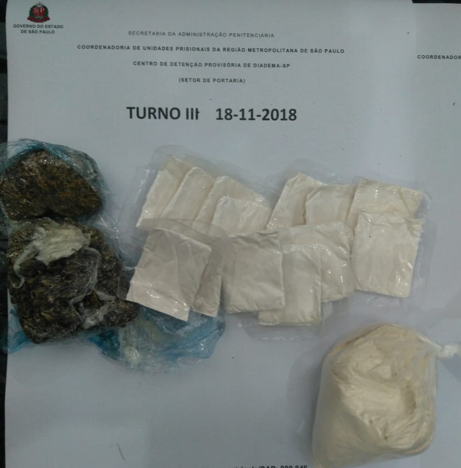 Por volta das 10h, do sábado, dia 17 de novembro, no Centro de Detenção Provisória de Suzano, a mãe de um detento foi frustrada na tentativa de entrar na unidade com invólucros de maconha escondidos dentro de um recipiente com comida. Ao revistarem os alimentos trazidos pela visitante, de 55 anos, os servidores encontraram 34 gramas de cocaína e 60,3 de maconha escondidos dentro de pedaços de carne.