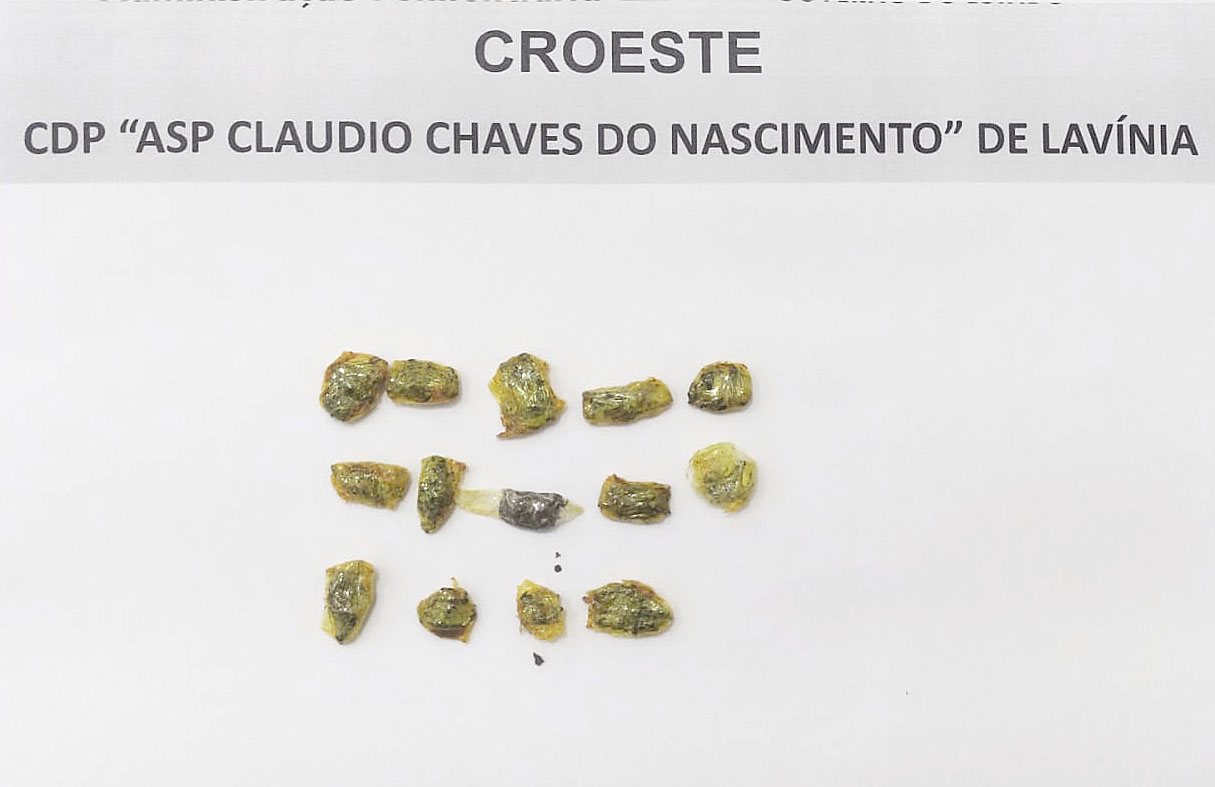No Centro de Detenção Provisória (CDP) de Lavínia, no domingo, a mulher de um dos detentos foi surpreendida, durante revista aos pertences que levava para o reeducando, com 14 invólucros que continham substância análoga à maconha.