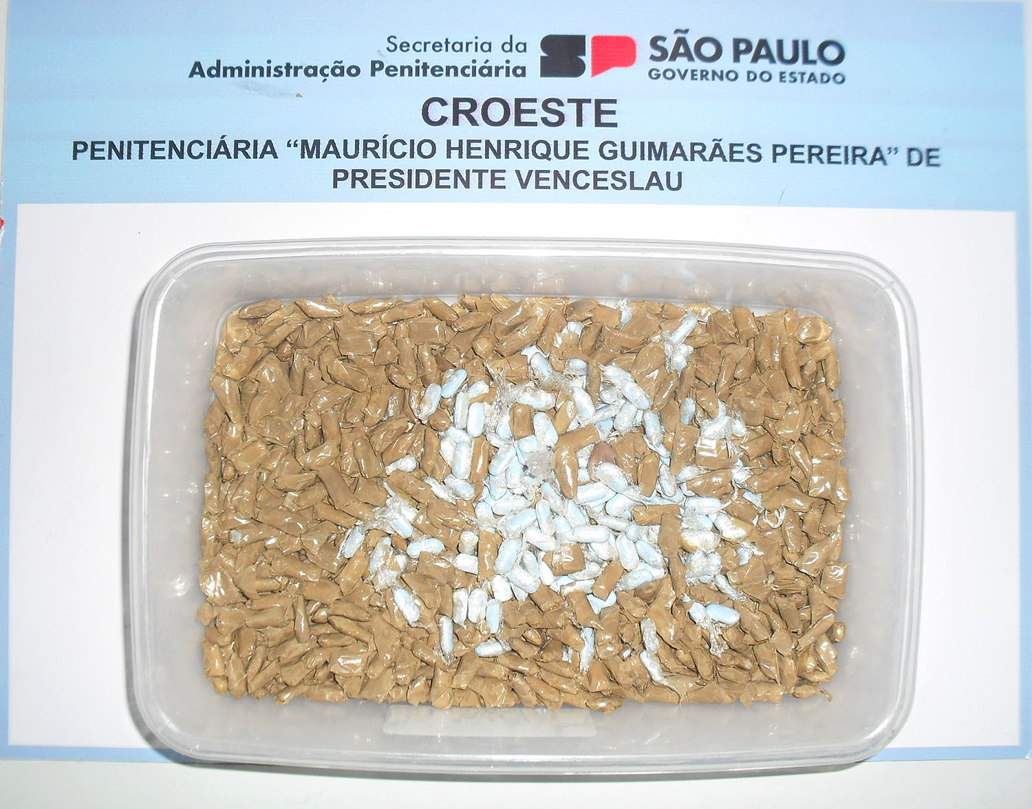 Na Penitenciária “Maurício Henrique Guimarães, a P2 de Presidente Venceslau, foram registradas três apreensões no sábado passado. A primeira delas ocorreu às 08h10, quando a esposa de um dos reeducandos passou pela revista através do escâner corporal, que apresentou imagem irregular. Espontaneamente, ela retirou um invólucro que continha 150 gramas de material similar a maconha e 13,91 gramas de substância aparentando ser haxixe, além de folha com anotações suspeitas, seis folhas e 41 comprimidos de cor azul.