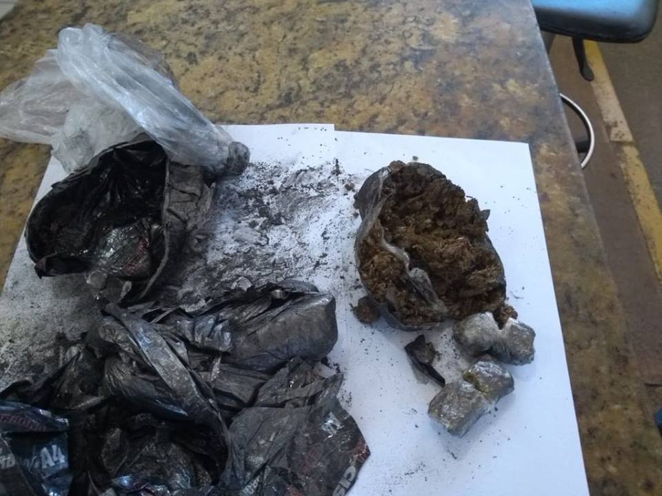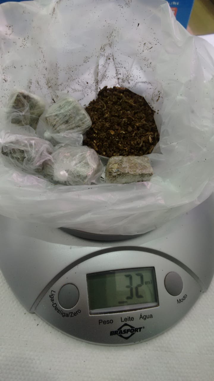 A segunda apreensão aconteceu no domingo (27), durante inspeção manual nos alimentos. Agentes encontraram, aproximadamente 123 gramas de maconha dentro de uma vasilha de arroz, que a companheira de um detento pretendia entregá-lo.