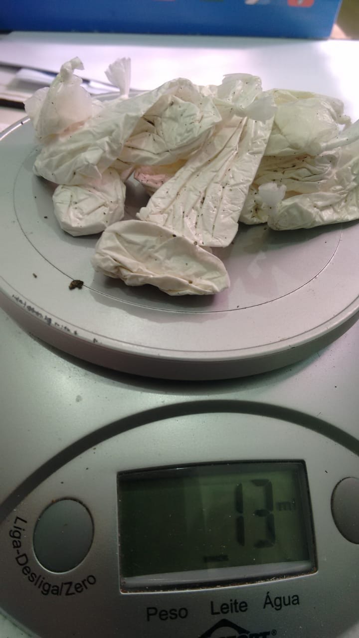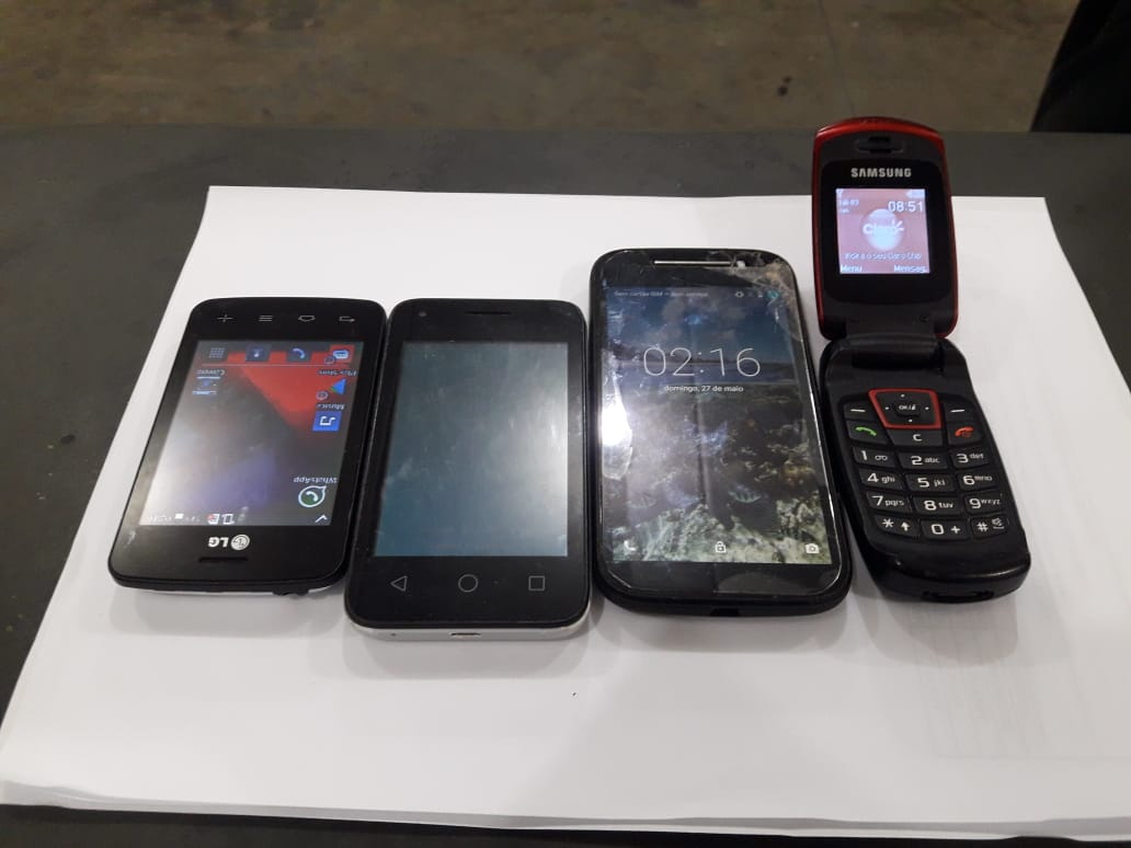 A primeira visitante possuía uma placa de telefone celular com visor, a segunda um invólucro com maconha, a terceira dois invólucros de maconha e a quarta um invólucro com cocaína.