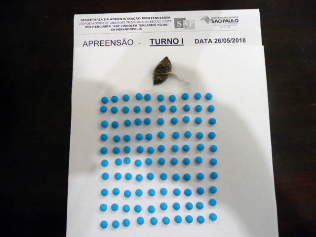 No dia 26/05, sábado, um visitante foi flagrado tentando entrar com ilícitos na PII de Mirandópolis. Ao passar pelos procedimentos padrões de revista, os ASPs perceberam que o homem estava com algo ocultado na barra da calça e solicitaram que ele mostrasse o local. Quando ele desdobrou a barra foi localizado uma porção de maconha e cem comprimidos estimulantes sexuais.